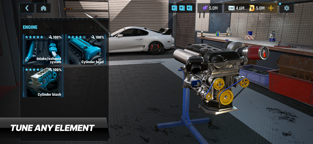 随心所欲地更换部件!引擎、变速箱、差速器、悬架,一切皆可更换。每个节点都可以使用大量部件进行改进。