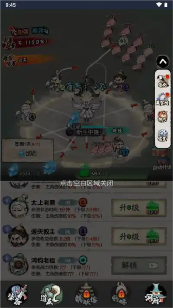 1、进入游戏后点击游戏界面即可攻击出现的异兽,一直点击界面会比较累,点击右侧的自动攻击选项可以开启自动战斗。