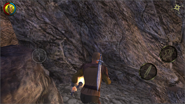 屏幕的右上可切换指南针/小地图,左上显示的是角色的当前状态(包括人物的HP(生命值)/MP(魔法值)),同时点击此处可以进入其他菜单。 下方的技能栏显示玩家当前所拥有的技能,游戏中玩家技能CD时会呈现灰色。而技能释放也很简单,玩家只需要点击即可。