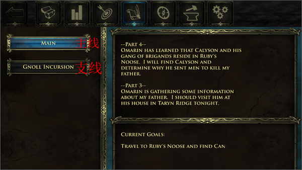 任务栏:游戏的任务分为主线任务和支线任务,玩家可以通过按键进行选择。