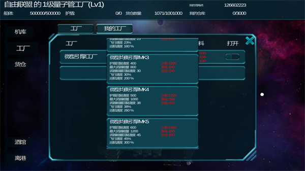 11、空间站有大小之分,大型船仅可停靠在大型空间站,大型工厂与巨型工厂仅可在大型空间站建造(例如造船厂与首都);工厂有等级之分,生产的商品种类也存在区别。此外记得及时补充原材料,否则厂子是不会工作的哦。