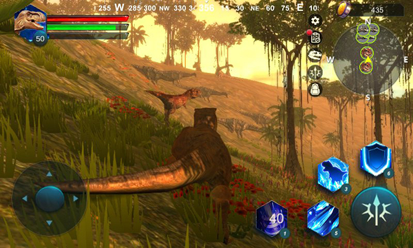 4、最后我们可以正式进入到游戏里,然后你可以通过虚拟按键来控制自己的霸王龙进行冒险。
