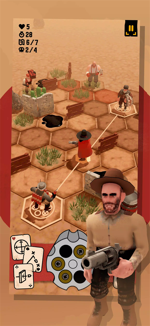 Guncho手游是一款策略射击游戏,由同名端游移植而来。游戏在保留原版端游经典玩法的基础上,针对移动端的操作方式进行了全面优化。玩家将在游戏中扮演一名叫做Guncho的枪手,在这个狂野且充满危险的西部世界中对抗各种危险分子。玩家在游戏中不仅仅需要瞄准敌人,还需要在移动的过程中改变方向,让对应方向的子弹瞄准敌人,尝试击败所有敌人。