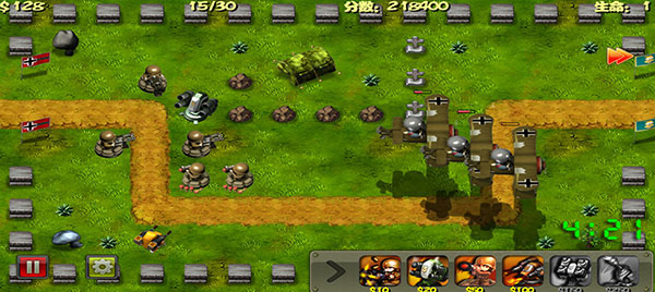3、在这款游戏里,你扮演一名与主力部队失去联系的小小指挥,临时接管你的部队和防御设施。