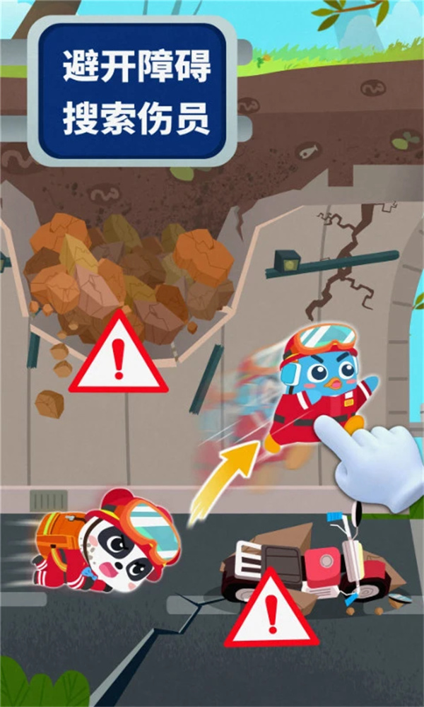 宝宝地震安全3游戏作为宝宝巴士系列游戏之一,依旧延续系列经典设计,采用的是卡通画风,在色彩明显的配色下,让小朋友们更能接受游戏的玩法。配合明显指引的教程和配音引导宝宝完成各类小游戏,宝宝不仅学到在地震发生的时候应该做什么,而且还清楚的了解到地震发生后,自己要注意的事项。