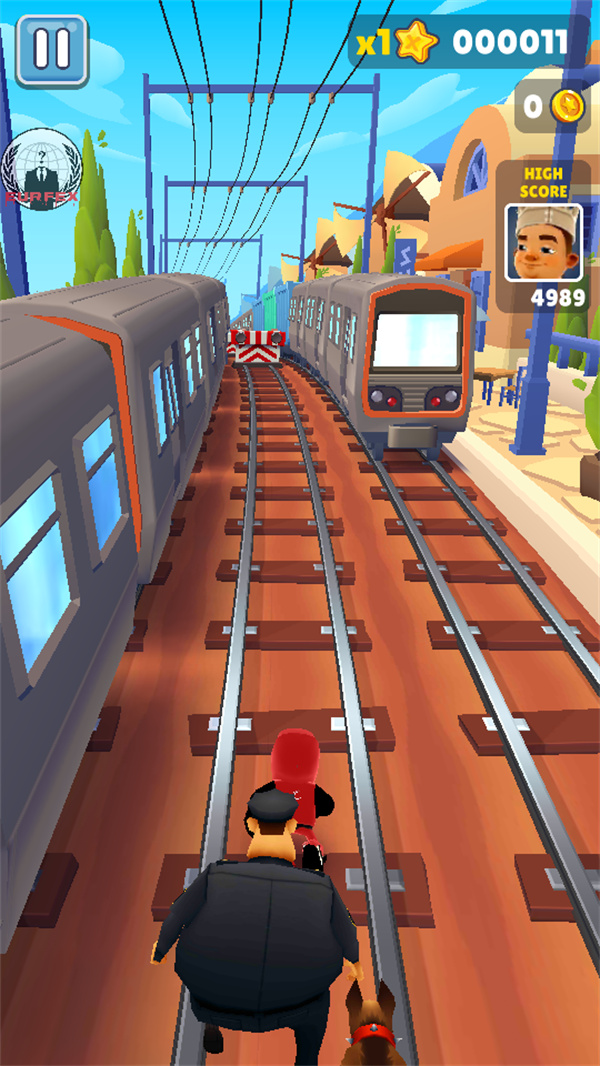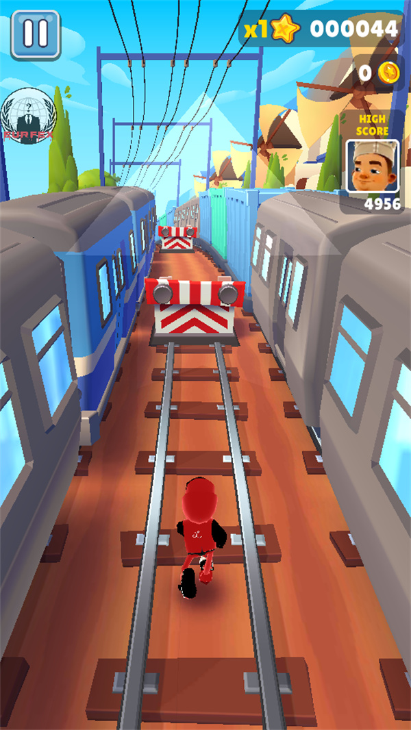 地铁跑酷神链红杰版本的玩法倒是和原版没有太大差异,依旧是操纵被魔改过后的各个角色在这地铁站中逃脱地铁保安的追捕,但在你前方的有各类障碍物和对向行驶而来的列车,你需要使用翻滚和跳跃等技巧来越过这些障碍,防止被保安追上。