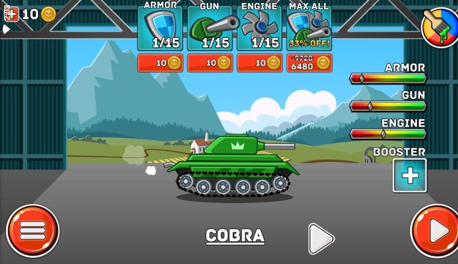 通过升级,你可以提高坦克的移动速度、伤害输出以及装甲强度。