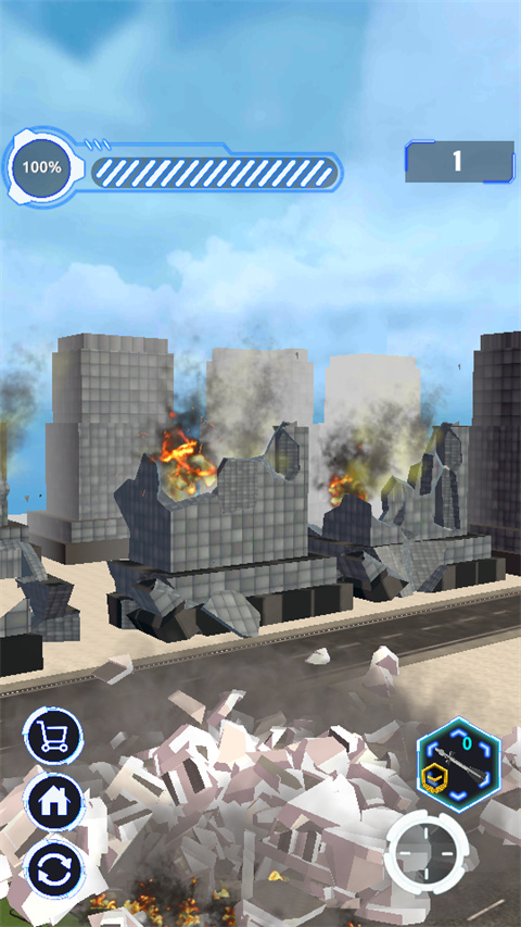 4、当建筑的摧毁进度达到过关要求的时候就可以过关了,同时还会根据摧毁进度给予星级评价,获得金币奖励和武器经验。