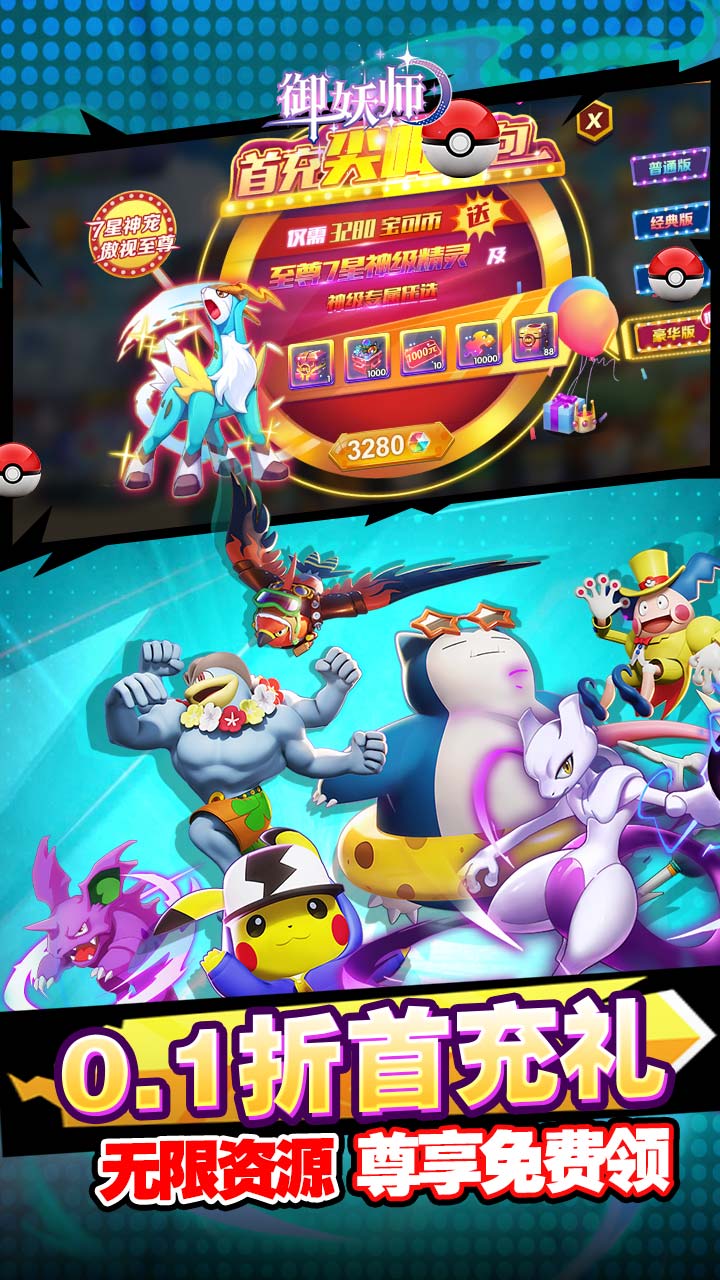 御妖师0.1折送真充宝可币版是一款采用经典宝可梦题材的Q版卡牌对战类手游,这款游戏里的所有卡牌角色都是以动漫里的宝可梦精灵作为原型,我们的玩家可以将几百种不同的宝可梦全部都收集过来。而且你还可以通过这款游戏来将这些不同的宝可梦组合成不同的阵容,并且根据属性克制的关系来攻击敌方的宝可梦,从而将它们全部打败。