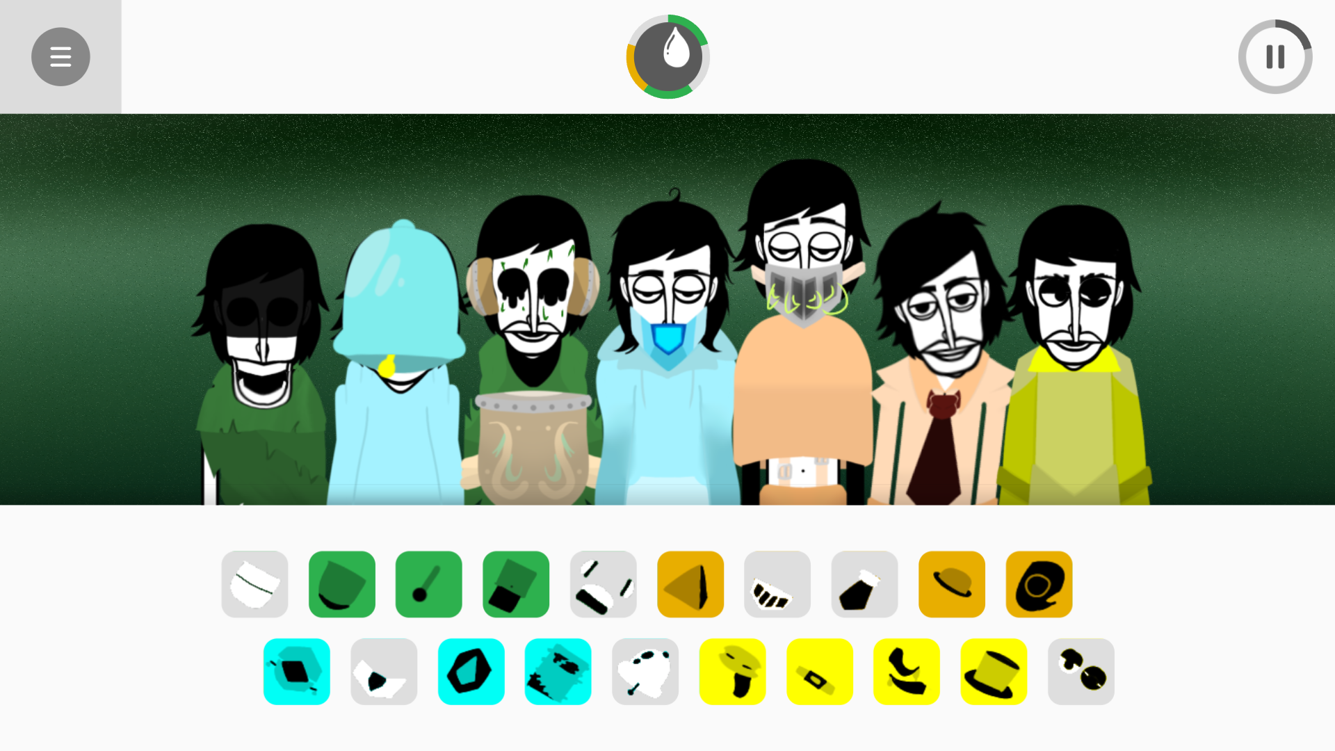 5、点击下方三角形进入游戏,开始创造属于你的音乐,玩法非常简单,将下方乐器拖动到角色身上即可;