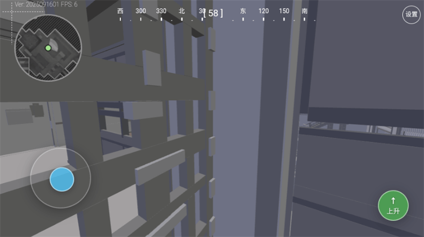 2、你可以看到左下角摇杆控制移动,滑动屏幕控制视角,右下角按钮可以控制上升;