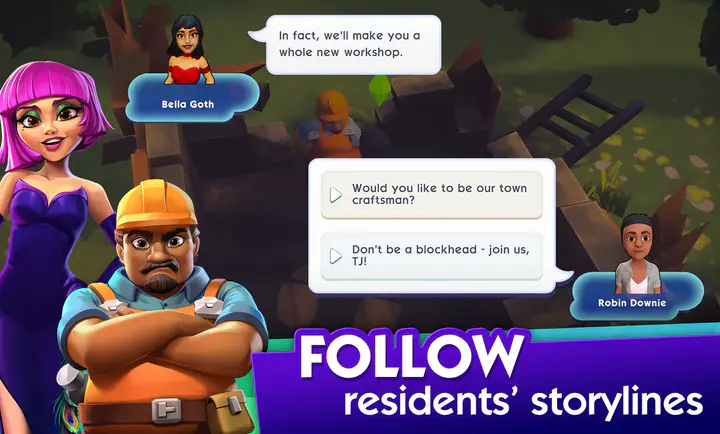 在这个城市建造模拟游戏中建造你的梦想小镇,你可以选择独特的模拟人生并塑造他们的故事如何展开。设计你自己的家,你的街区,你的城镇,你的社区。在建设城镇的同时,探索新的地点并完成叙事任务,为角色创造完美的居住环境。