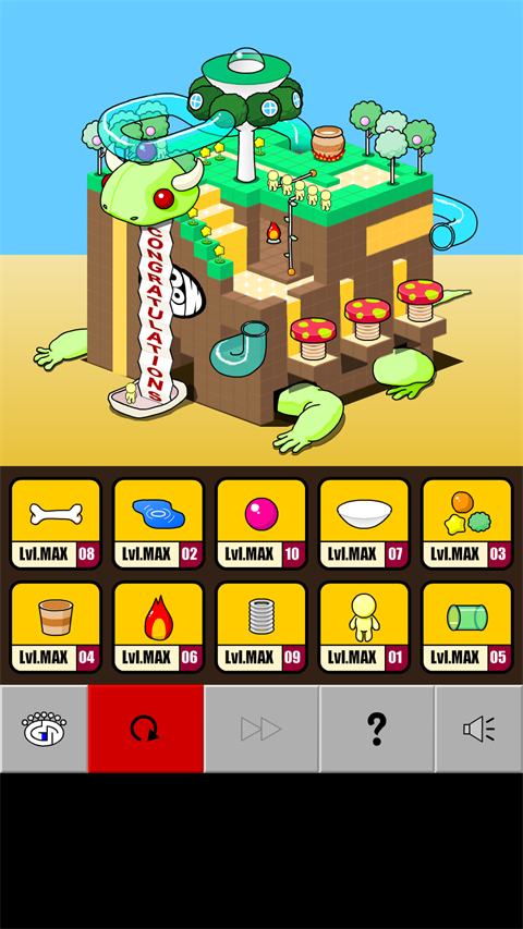 奇妙水世界手机版是一款由EYEZMAZE开发的生长球系列第三部作品,是flash端网页游戏移植过来的版本。游戏的操作十分简单,刚开始会提供给玩家一个场景和八个选项,而玩家选中一个选项就会将它添加到场景中,不同的选项物品会带给场景不同的建设变化,当玩家选择完所有选项之后,游戏就会结束,不同的选择顺序之间会产生不同的效果,从而使得场景中的道具升级,只有所有选项道具升级到max才是真正完美的游戏结局。