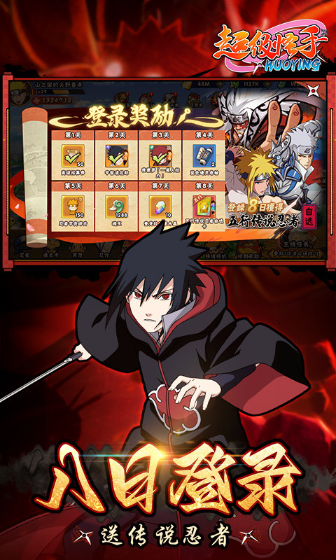 登录豪礼:连续 8 天签到送传说级忍者+S 级忍具套装,首日即赠 “金色闪光“ 波风水门。
