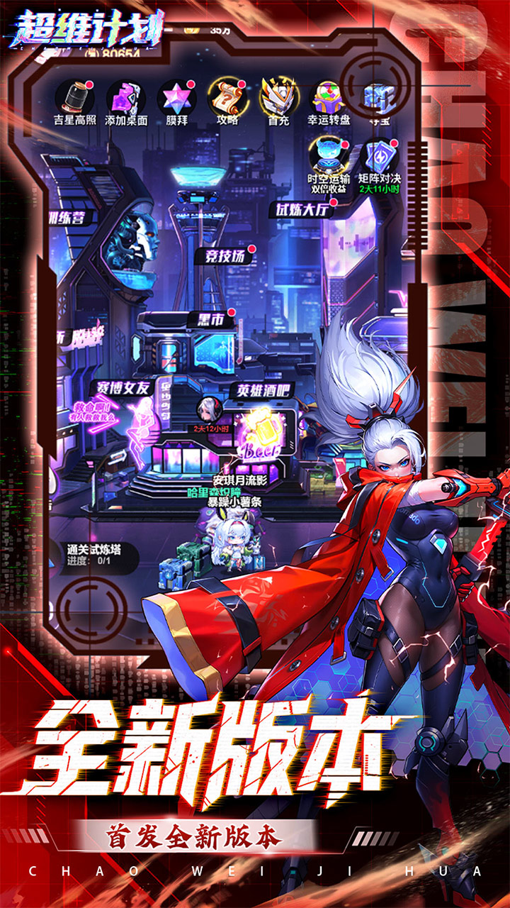 超维计划3.5折超神英雄送千抽版是一款采用了赛博朋克风格的卡牌策略类手游,这款游戏将会以未来科技世界作为背景,而我们的玩家可以通过这款游戏来收集和培养各种不同的卡牌角色。当然,这些不同的卡牌角色都拥有属于自己的特殊能力,我们可以将这些卡牌角色组建成强大的阵容去进行战斗,从而帮助你战胜更多的对手,完成不同的任务。