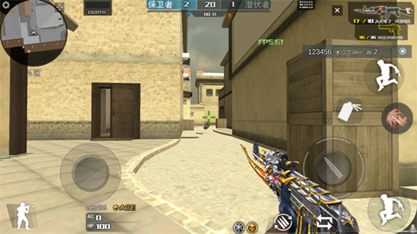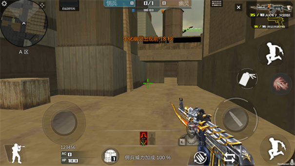 4、进入游戏内,玩家可以滑动左侧摇杆进行移动,右侧的按键分别是更换武器,射击,跳跃等;