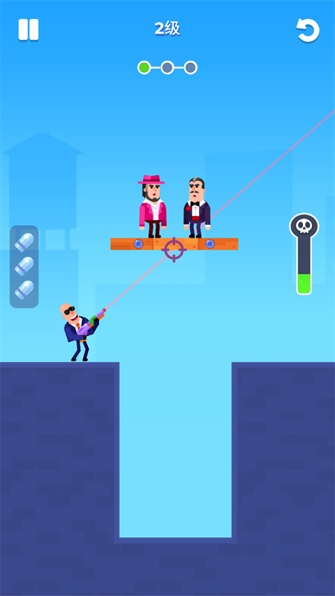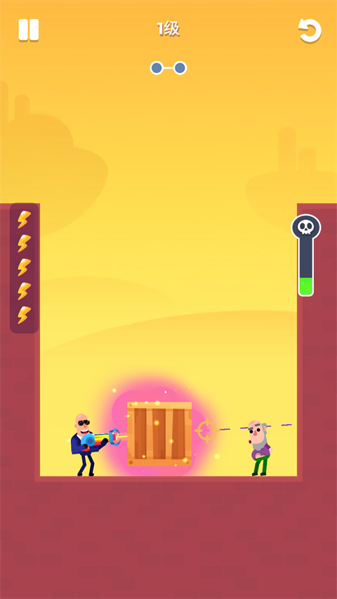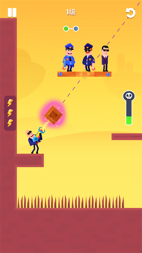 击打大师破解版是一款简单有趣的休闲益智类手游,画风简约清新而且富有特色。在游戏中,玩家需要使用自己的射击角色和武器,通过闯关解谜的方式来进行游戏,在游戏中玩家需要利用好自己手上有限的弹药,通过观察并利用好各种各样的地形来消灭所有的敌人,而玩家通关的时间越短,通关的评价也会越高,在游戏中玩家会面对各种各样的地形,有些地形可以通过破坏支撑结构来碾压敌人,还有些地形可以通过攻击炸药桶炸飞敌人,非常有趣。