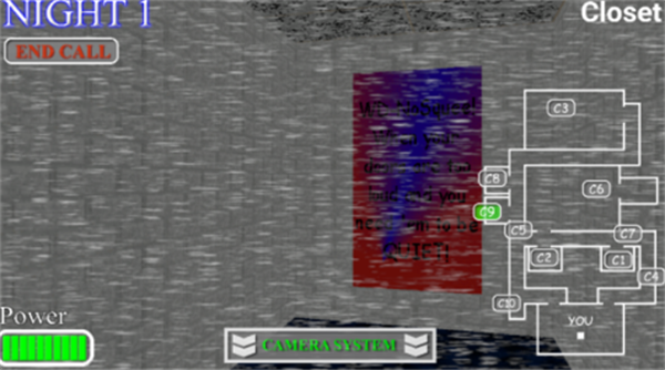 摄像系统可用于监控Baldi和他的朋友们的行踪,但要小心。你也可以使用办公室的门来抵御他们的攻击,但关闭的门会更快地消耗电力,而且你只有有限的数量可以撑过夜。