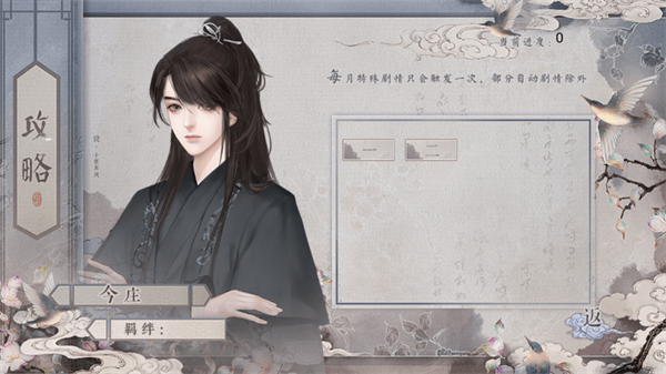 【临幸后宫】:去后宫临幸,或金华殿召见皆算完成,在服药提示后结算,合欢散临幸除外。