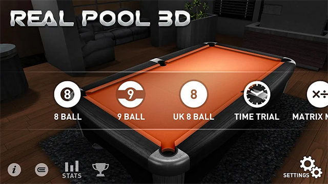 1、打开真实台球3D游戏,加载完成后即可进入主界面,根据个人喜好挑选台球模式开始体验。
