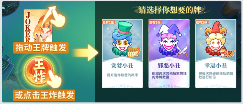 王炸后选择任意一张小丑牌