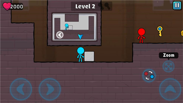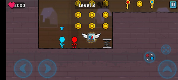 3、玩家在游戏里面需要帮助红色和蓝色的两个小人,