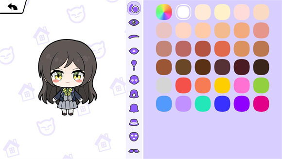4、在编辑界面,你可以自由调整角色的肤色、发型、颜色、服装等外观细节。