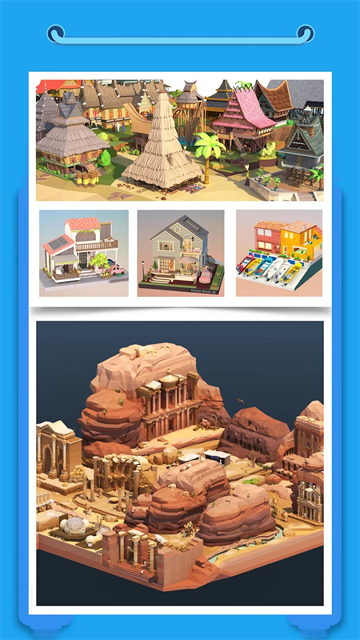 我爱拼模型最新版本是一款简单有趣的益智类模型解谜游戏,可以通过3D的模式给大家呈现出世界各地的风景名胜和当地特色风情与标志性建筑,所有的场景都是由真实场景微缩而成,使玩家足不出户的情况下就能了解到世界各地的异域风情。另外,游戏中的画面也是十分的精美,操作简单易懂,只需要玩家观察模型材料的细节,并通过模型和零件之间的卡口形状将各个零件组装起来,随后在拼接出一个又一个模型,在拼接的过程中,能够给予玩家视觉性立体体验,从而使玩家发挥自己的脑洞想象空间,锻炼玩家的头脑,并提升玩家的想象能力。