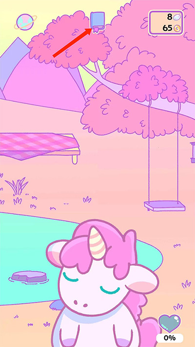 7、而独角兽在家的时候通过款待(喂食) 洗澡 宠爱(刷毛)这三个方式来增加和独角兽的好感度 以从寻宝途中获得金币和新物品 每次寻宝回来好感度清零。