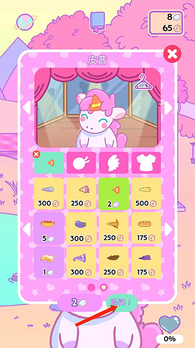 玩家可以在精品店中选择各种头饰、表情、翅膀和衣服等装饰,将自己喜欢的风格展现在独角兽身上,打造出个性化的独角兽造型;