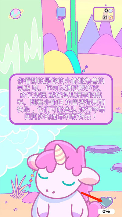 1、游戏画风偏萌系风格,一定要多刷刷好感度,我们可以给独角兽进行培养,让他去外出旅行,又或者给他洗个澡,还可以对他进行宠爱和款待;