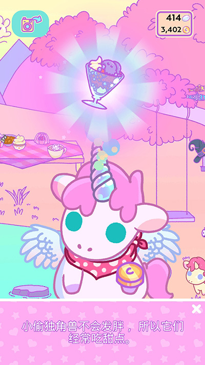 玩家需要喂食、洗澡、宠爱独角兽,增加它们的好感度;通过与独角兽的互动,建立深厚的感情,并解锁更多的养成内容;