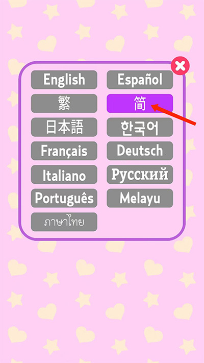1、打开小偷独角兽游戏,首先选择语言,包括简体、繁体、英文、日语、韩文等语言,选择【简体】选项;