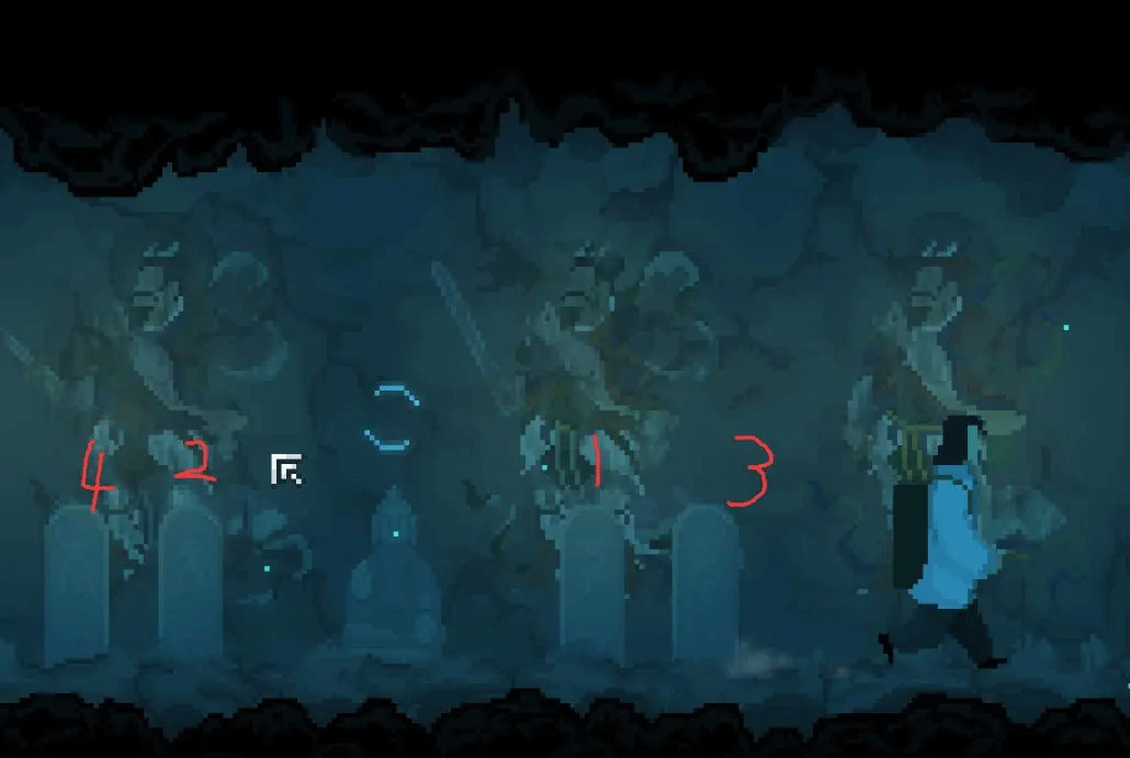 画面上游戏做过多种尝试,最终确定以像素画法来表现国画水墨的感觉,不同于以往大部分游戏的画面。