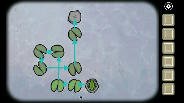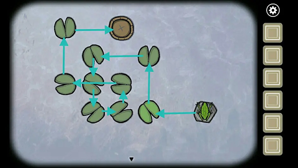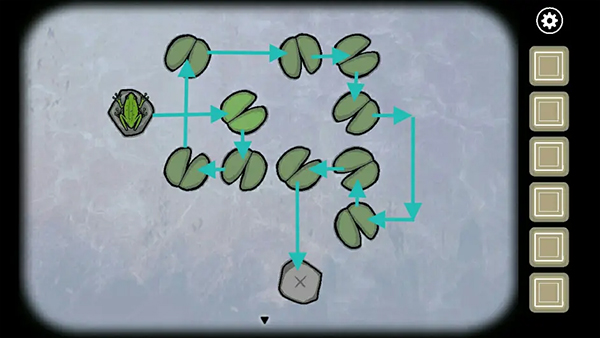 1、在大门右侧湖面点击青蛙,按照正确路线依次跳过所有荷叶,最后停在石头上,即可获得第一只青蛙;