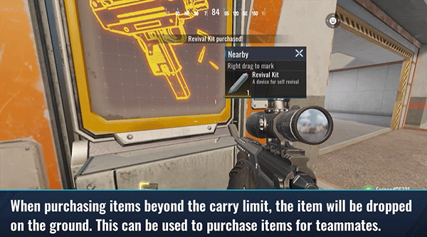 当购买的物品超出携带上限时,该物品将掉落在地上,这可以用来为队友购买物品。