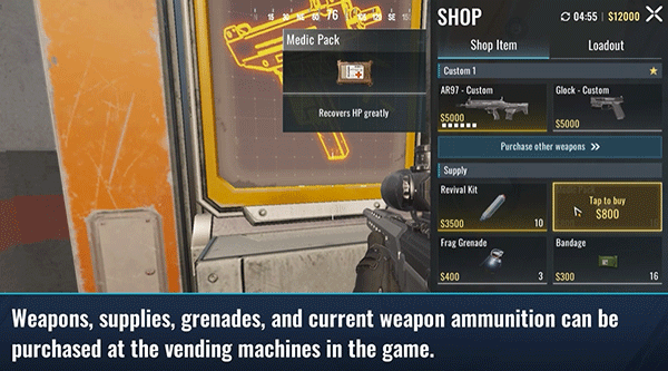 武器、补给品、手榴弹以及当前的武器弹药均可在游戏中的自动售卖机购买。