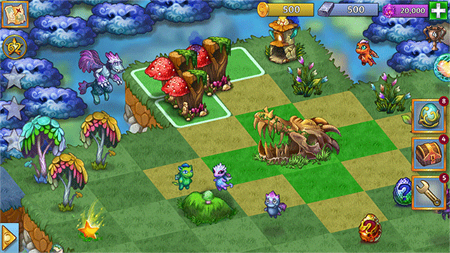 匹配蛋,孵化有用的巨龙,它们会在山谷中漫步,采集物体供你使用或匹配。