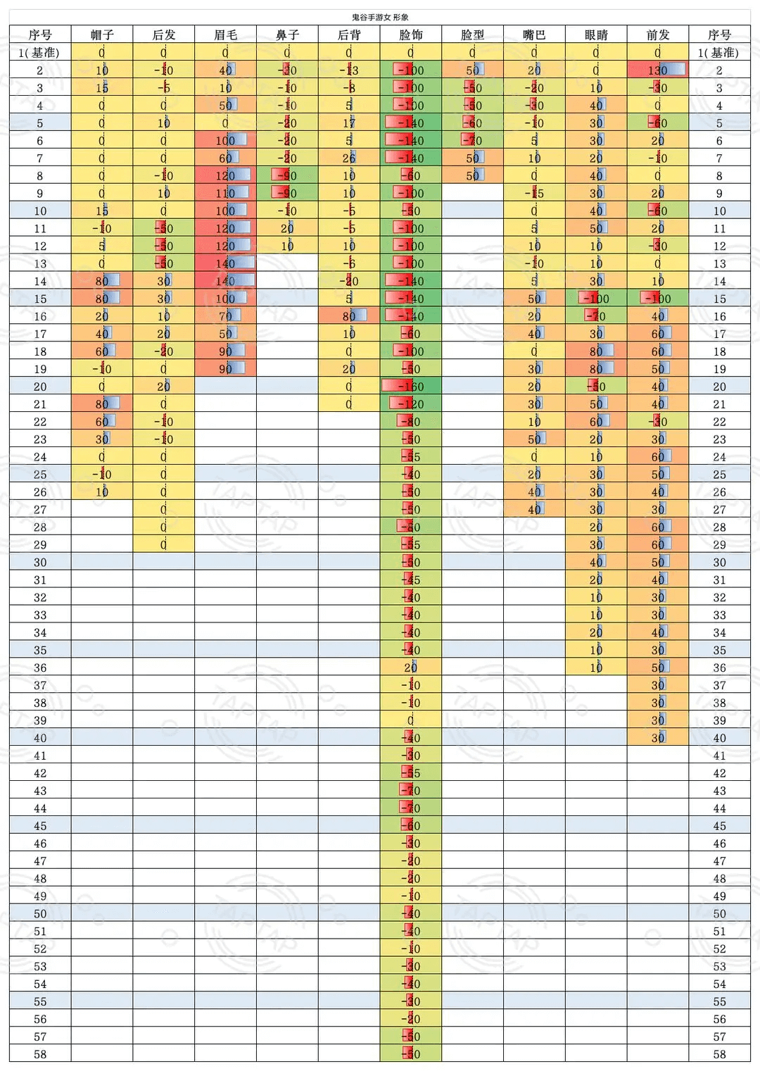 鬼谷八荒手游男性角色捏脸魅力值一览表