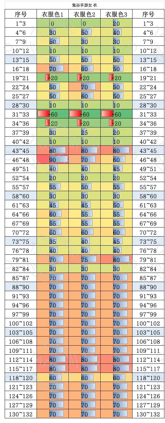 所有数据均以1号位为基准,根据基准进行上下浮动。