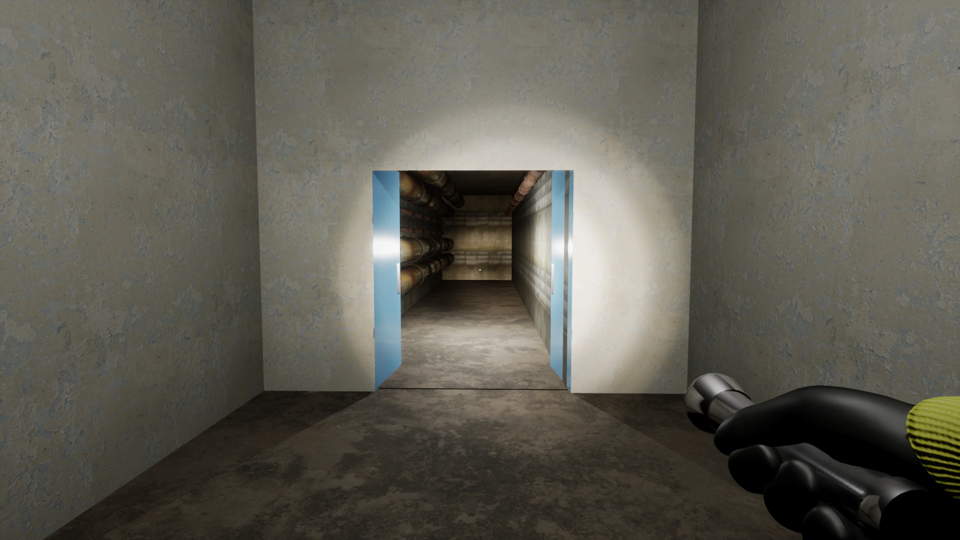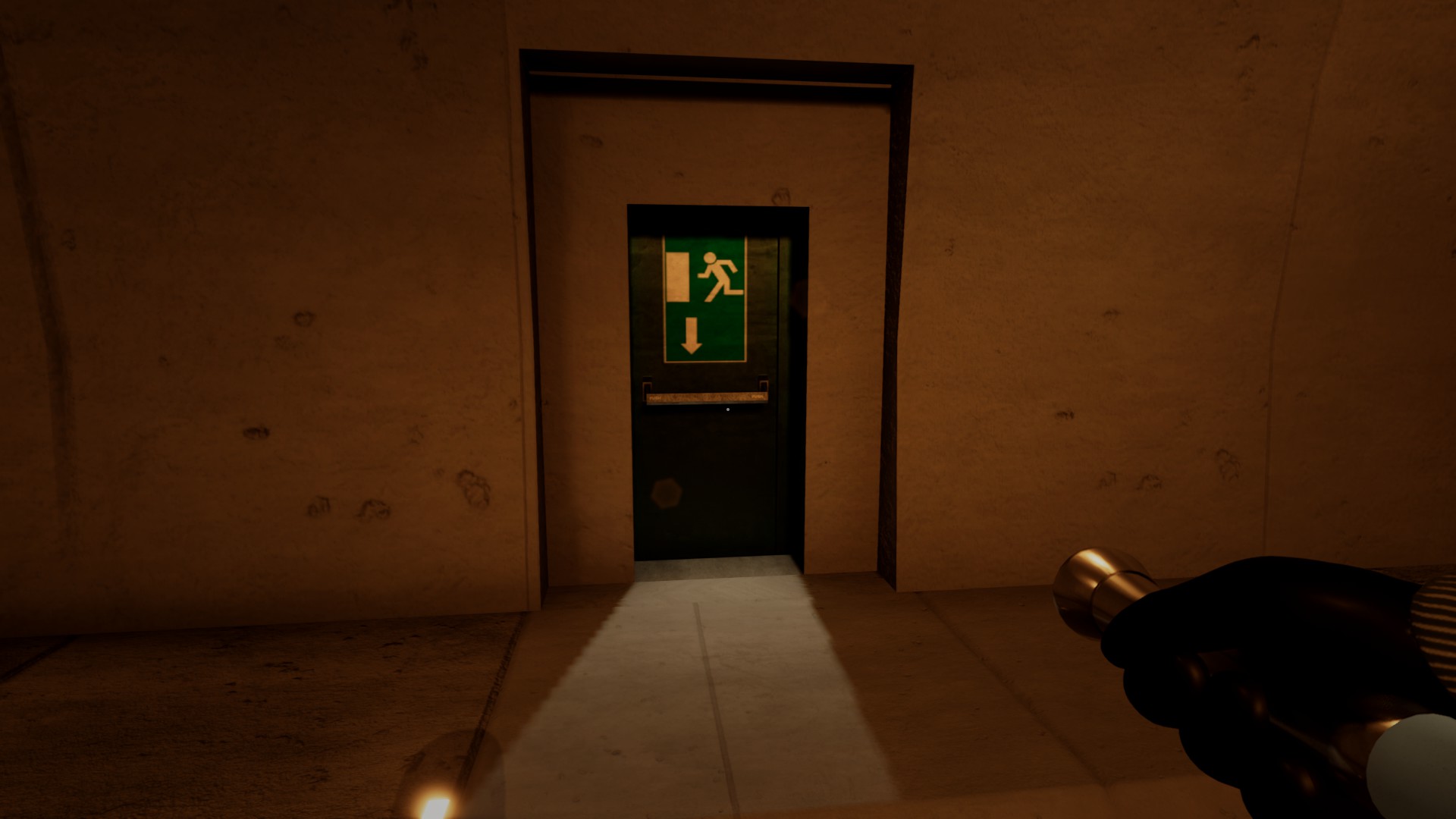 从电梯出来后往左走,有一个卷闸门跟一个安全出口,先从安全出口出去,到达隧道之后再在左边墙壁找到另一个有安全出口标志的门。