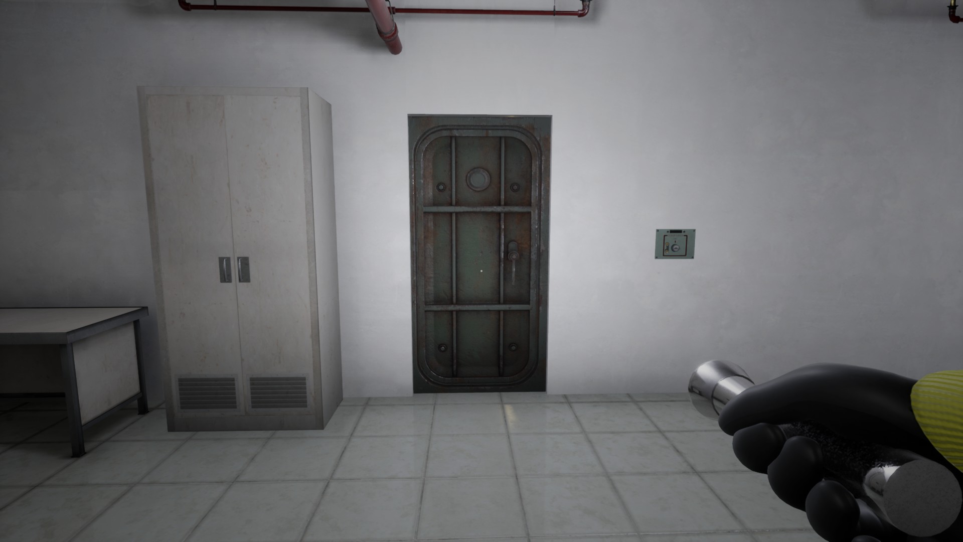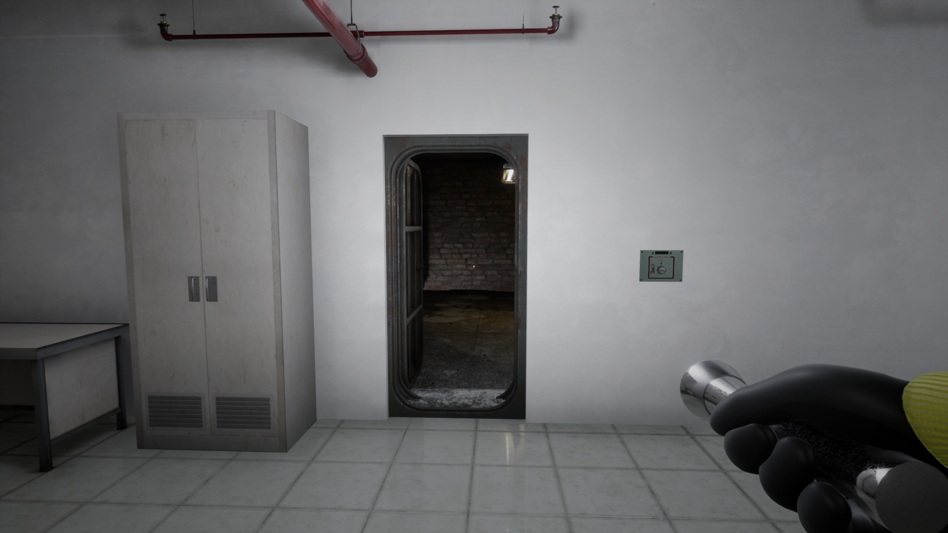 进入之后找到这个按钮,按下之后注意墙角的监控,别被监控照到即可过关,被照到了最后的门就是关上的,需要重新按按钮跑一次。