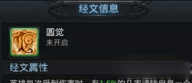 注解 :圆觉经文和楞伽经文是辅助型经文,两者都是受到伤害时有几率触发,不要因为1% 和 1.6% 的触发几率就小看他们,这是一星经文的效果,经文星级越高触发几率也会越高。