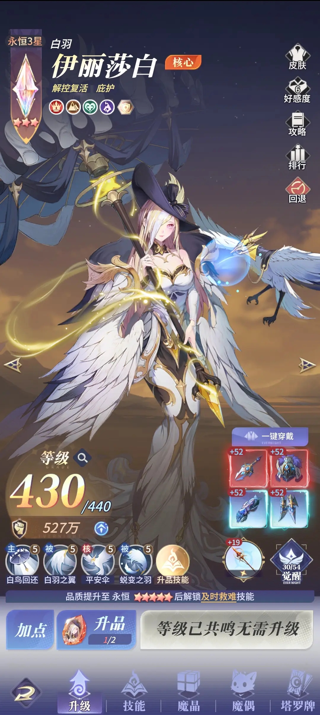 (4)养成建议:优先升满被动技能,魔偶选“净化+圣洁”强化解控能力