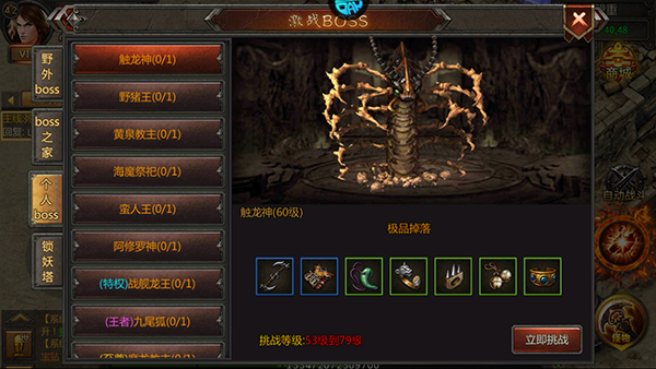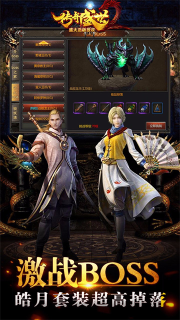 地宫内存在守护BOSS,BOSS会掉落丰富的物品。玩家需要依次击杀四只守护兽后才能击杀九幽蟠龙。