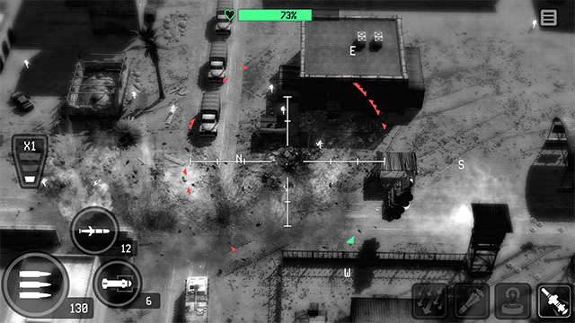 3、游戏采用俯视视角,玩家需精准操控无人机,对地面敌军进行火力打击;