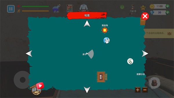 3、在游戏顶部中间位置有一个【地图图标】。点击后即可查看整个学校的区域分布,包括宿舍、操场、教学楼等位置。