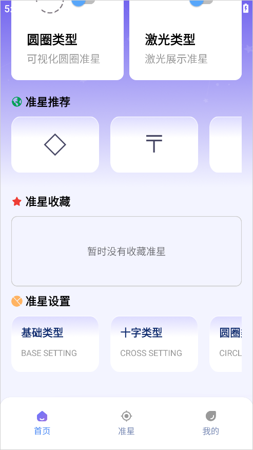 1、下载安装并打开软件后,你会看到多种不同类型的准星,每个样式都别具特色,可以根据自己的需求选择使用。