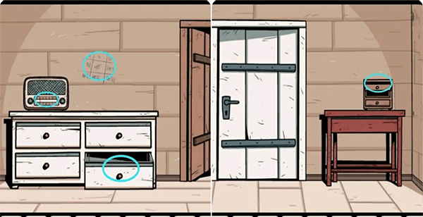 4、在白色门右边的抽屉柜里拿到两节电池,先把电池装进对讲机,然后将频道调到4听对讲机里播放的音乐,再点击收音机调整频道至你所听到的音乐频道上(这里要记住频道数字,不同音乐对应不同的频道)。