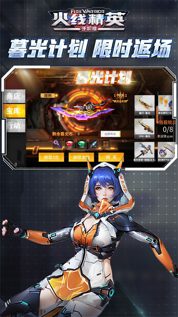 v0.9.35.566309火线精英是一款非常好玩刺激的3D枪战手游采用了便捷的双摇杆操作,所有人物操作都是第一人称3D视角,玩家进入游戏后可以自由的去控制角色移动和射击,搭配上科幻的游戏画风以及精致唯美的人物角色,为玩家们带来了最为真实的射击游戏体验。此外,玩家们在游戏中的每一局都将会唤醒你昔日玩过的《反恐精英》,相比其它传统的射击游戏不一样的是。游戏有着独特的机甲模式,还有百种地图、千种枪任由玩家前来挑选,还完美复刻了竞技模式、爆破模式等众多经典的FPS玩法,加入了天使复仇模式与机甲模式,使得游戏可玩性大大提升。
